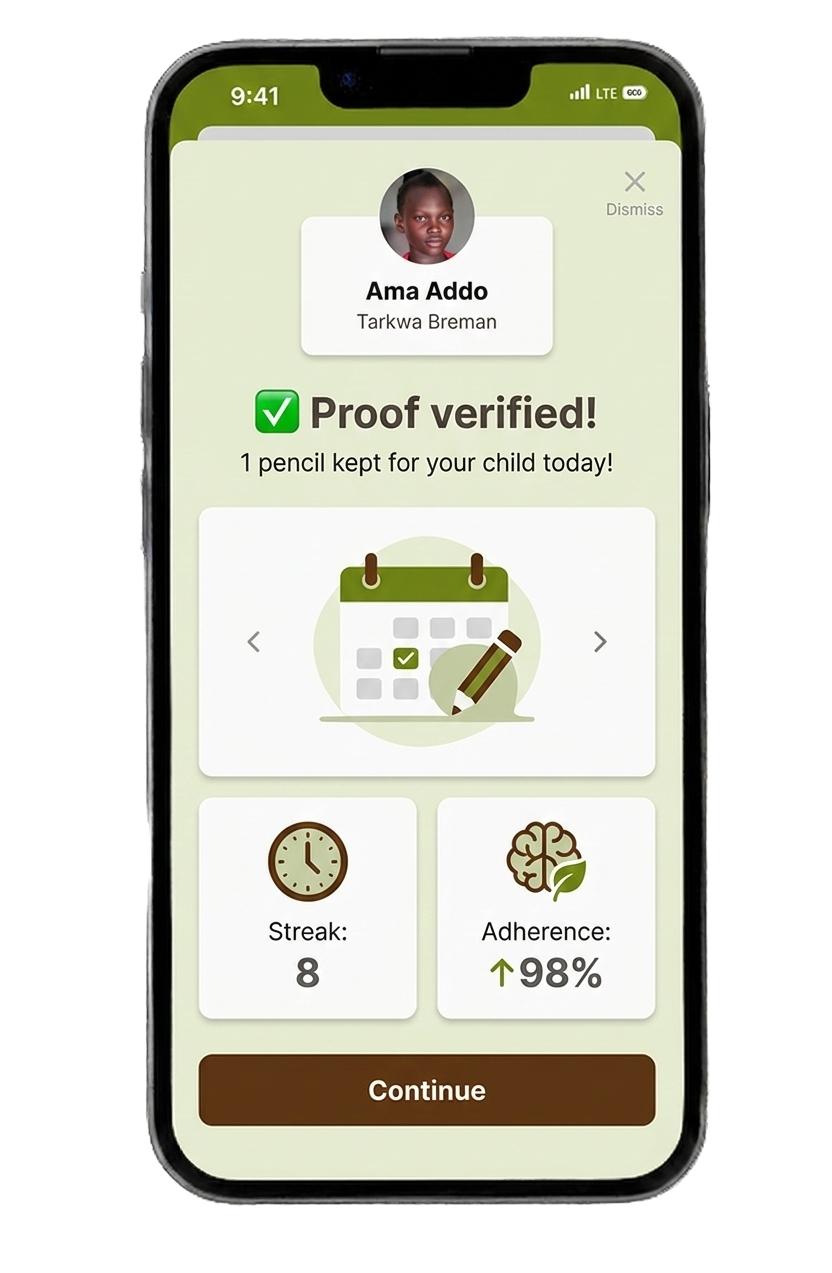 BrainStay combines loss aversion with community visibility—turning behavior into identity, not just incentive. A parent whose participation secures rewards for their child earns both.